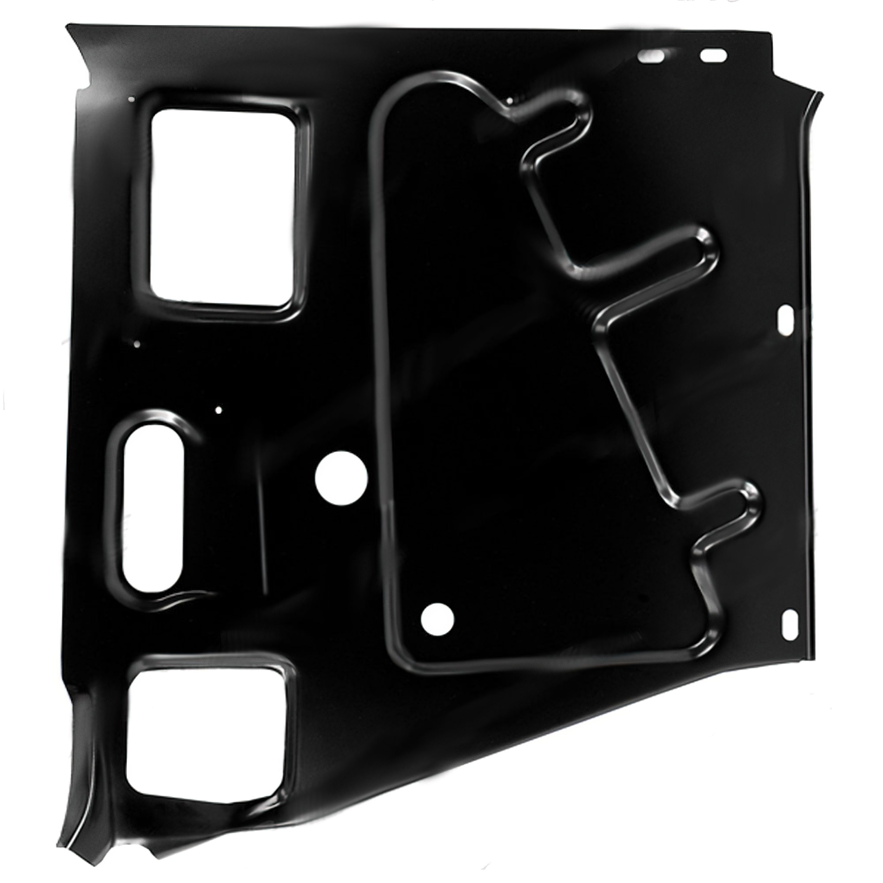 Lower Rear Quarter Inner Panel - RH. This repair panel for the trunk area overlaps the trunk floor by 1" and drops off the meet the bottom of the quarter panel. H-9 1/2" x L-20 1/4".