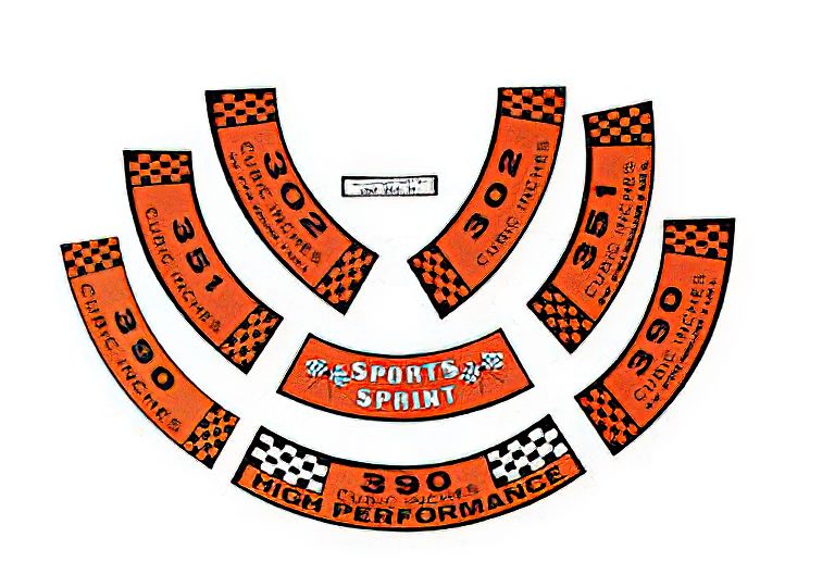 - Air Cleaner Decals - "Sports Sprint" Air Cleaner Decal. Features sharp, clear details. The most authentic reproductions available. Correct colors and paper finish. Decals with "FORD" and "MUSTANG" trademarks are officially licensed by Ford Motor Company.